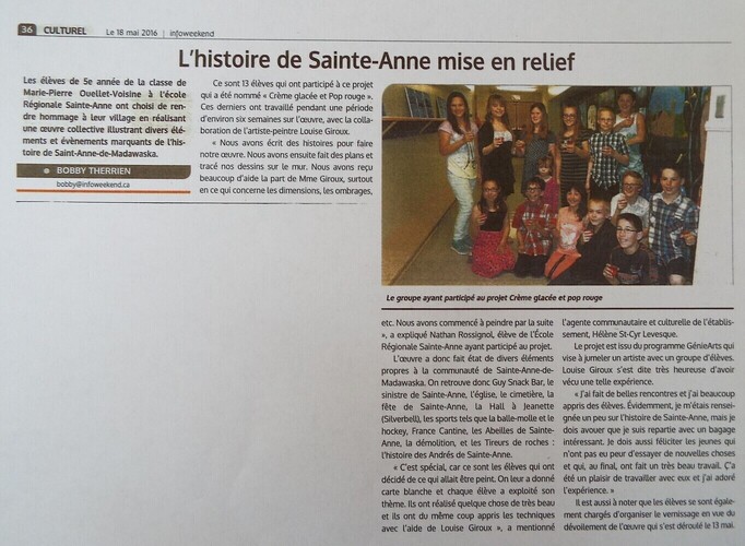 I retired from post-secondary teaching in 2011. Since then, I've been pursuing my passions: teaching and drawing/painting. I offer workshops to young people and adults at my studio in the Maillet Centre and at the Edmundston Arts Centre. I also formed and run the “Femmes en art” group (now in its 5th year), which aims to introduce the public to female artists who have gone “unnoticed” in the history of art. I've also been offering “Génie arts” workshops in the schools of the district since 2016.