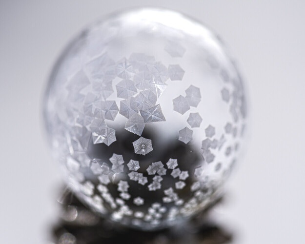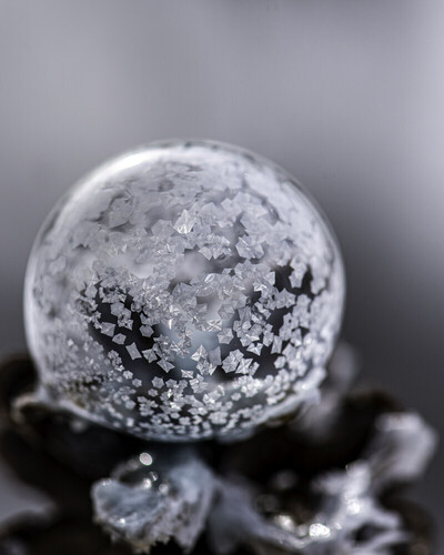 The macro-photography technique was mostly used. Letters and colors were used to pursue the teacher's themes. Another project involved photographing frosted soap bubbles in winter.