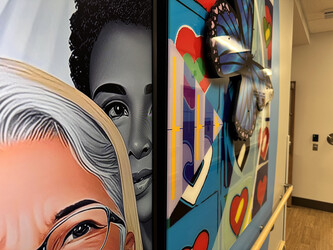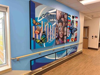 “You are our world” highlights the importance of the individual (through portraits) as an integral part of our community. It is a mural composed of modules that come together to form an overall image representing diversity, inclusion, compassion, solidarity, and the value of human beings.